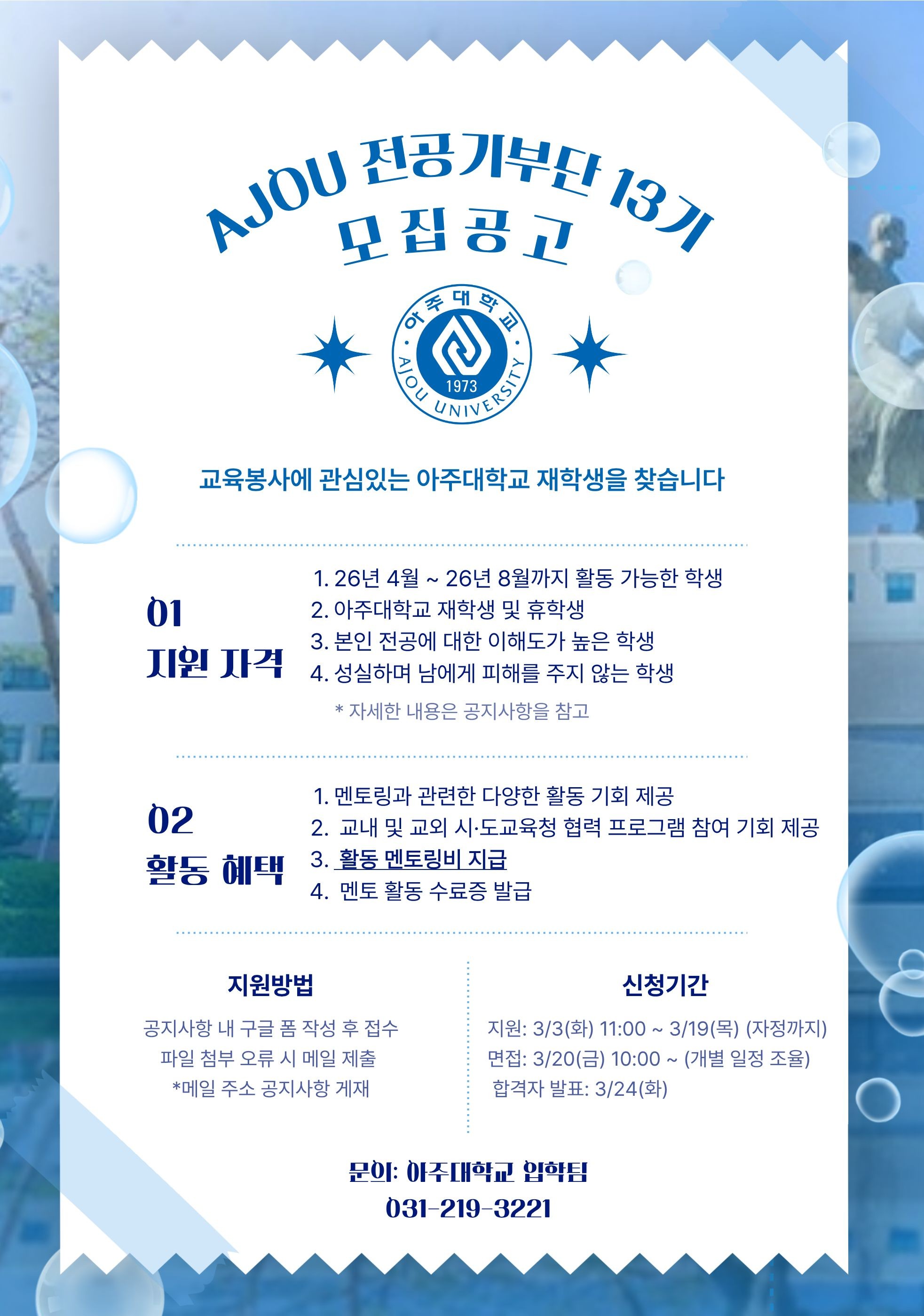 [입학처] 본교 AJOU 전공기부단 모집