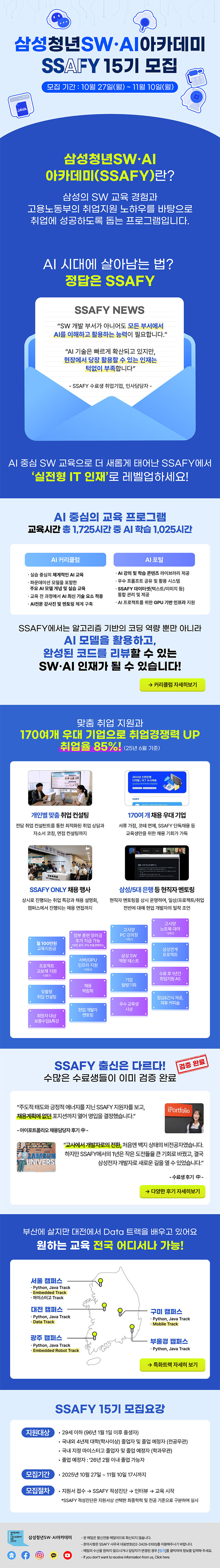 [기타] [삼성청년SW아카데미] 청년 취업 경쟁력을 높여주는 SSAFY 15기 모집 안내 (~11/10)
