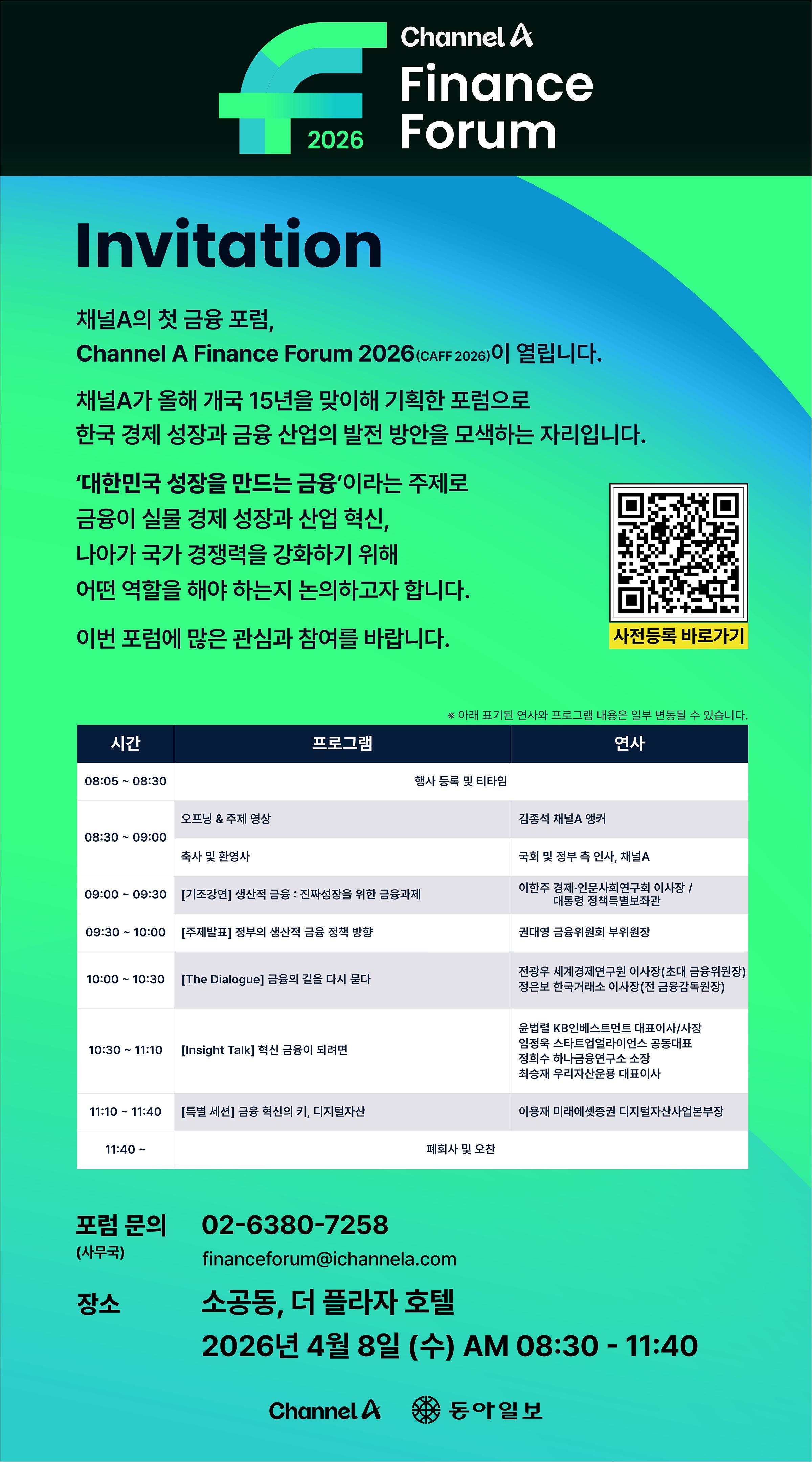 [기타] [채널A] Channel A Finance Forum 2026 개최 안내 (4/8)